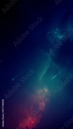 Cosmic nebula with shooting stars and distant galaxies in deep space