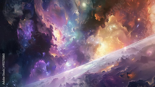Cosmic vistas unfold, merging fantasy and reality in a celestial abstract universe
