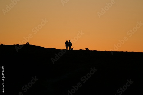 sunset, couple, nature, love, mountain, sun, dog, walk, amatory, romance, evening