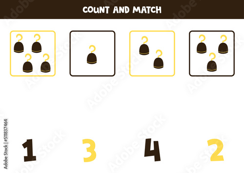Counting game for kids. Count all pirate hooks and match with numbers. Worksheet for children.