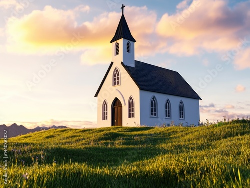 church, field, grass, sunset, sky, cloud, countryside, architecture, religious, building