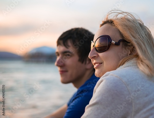 25, love, young, human, young men, girl, calm, quiet, happiness, pleasure, positive, coast, solar, sunglasses, sunset, evening, beach, sea, 2, portrait, people, couple