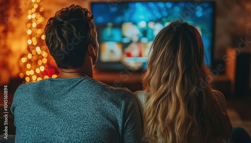 couple, living room, flatscreen, cosy, couch, comfort, entertainment, romance, christmas tree, togetherness, evening, relaxation, home, love, warmth, indoor, partner, festive, lifestyle, watching, leisure, cuddling, friendship, decor, enjoyment, smile, oneness, connection, together, intimacy, quality time