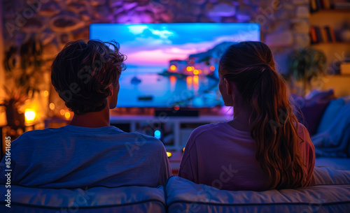 couple, television, watching, living room, evening, night, screen, motion picture, film, show, relaxed, comfortable, home, entertainment, relax, cosy, romantic, leisure, lifestyle, indoor, furniture, sofa, couch, house, dark, light, glow, cinematic, sea, seascape, scenery, city landscape, sunset, landscape, urban, harbor, waterfront, boat, water
