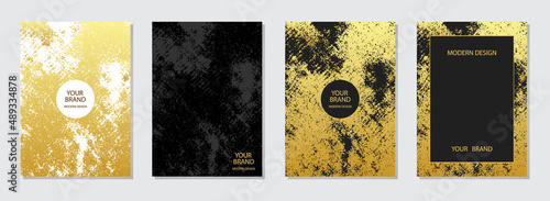 Cover design set. Creative backgrounds, golden grunge texture, insert for text and advertising, vertical templates collection. Stylish decoration for brochure, catalog, book, poster, flyer design.