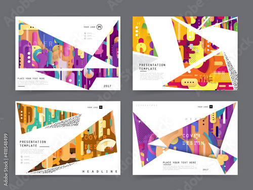 Covers templates set with graphic geometric elements. Applicable for brochures, posters, covers and banners. Vector illustrations.