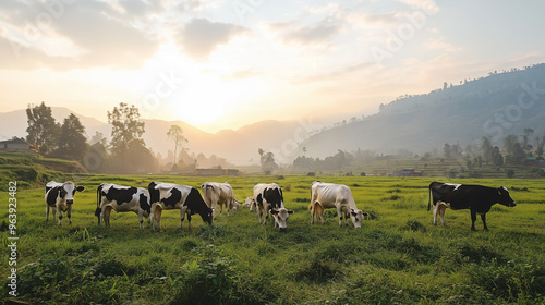 animal themes, eat, field, green, one animal, country, environmental conservation, sunny, flower, black, bush, cheerful, chewing, dairy product, fence, food and drink, mountain chain, tranquil scene, trough, cow, meadow, pasture, farm animal, horizontal, photo, mammal, no people, color image, ranch, milk, herd, feeding, standing, copy space, calf, head, farming, britain, grass, animal, eating, cattle, grazing, outdoors, nature, rural scene, sky