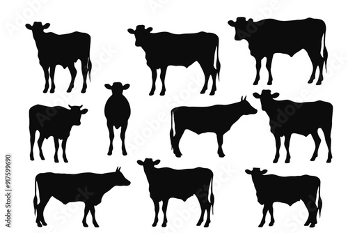 Cow set Black silhouette editable ai 10