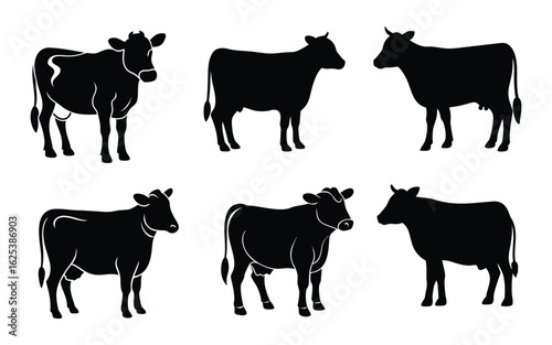 Cow Silhouette Set – Black Farm Animal Vector Icons on White