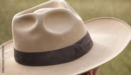Cowboy hat on a wooden table in the countryside. Selective focus.