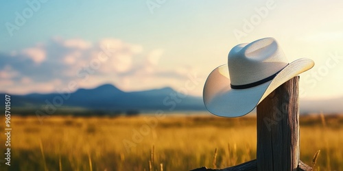 Cowboy Hat on Wooden Fence at Sunset