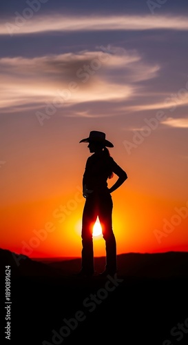 woman, cowgirl, silhouette, sunset, hat, western, outdoors, sun, sky, landscape, evening, dawn, twilight, horizon, female, standing, person, rural, nature, beauty, backlight, orange, yellow, purple, idylli, peaceful, serene, freedom, adventure, travel, lifestyle, ranch