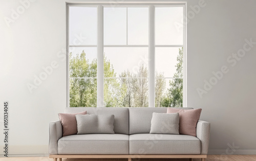 living, room, modern, sofa, grey, couch, large, window, view, greenery, interior, design, home, decor, comfortable, seating, natural, light, cosy, space, contemporary, furniture, soft, pillow, bright, atmosphere, serene, environment, indoor, plant, minimalist, hardwood, floor, inviting, setting, casual attire, style, relaxing, stylish, styling, open, decorative, accessory, residential, calmness, warm