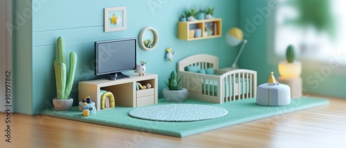 childcare center, interior, design, room, furniture, green, plant, decor, cuddly, comfortable, toy, television, modern, soft, pastel, playful, bright, warm, lighting, arrangement, baby, safety, texture, colours, wall, artwork, linen, cushion, carpet, floor, space, accessory, minimalistic, whimsical, cosy, stylish, shelving, storage, accent, ambience, family, relaxing, inviting, atmosphere, small, layout, contemporary, charming, cute