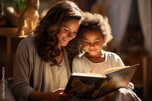 Cozy Reading Time: A Mother and Child Share a Storybook Moment