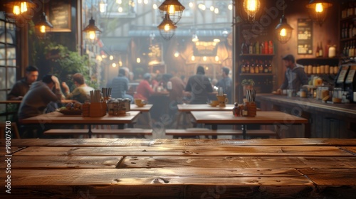 Cozy restaurant interior with warm lighting and patrons enjoying meals in a rustic setting