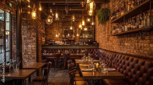 Cozy Urban Restaurant Interior with Warm Lighting