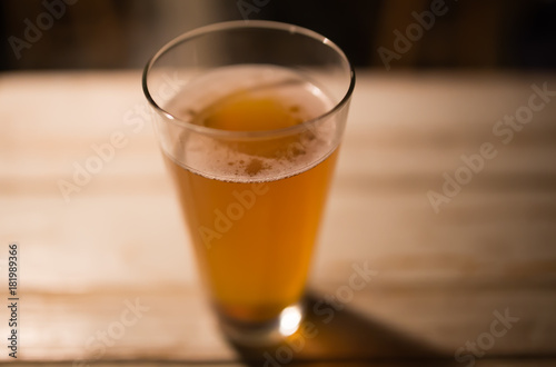 Craft beer on wood table in a pub