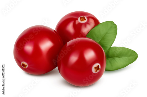 Cranberry with leaves isolated on white background with clipping path and full depth of field
