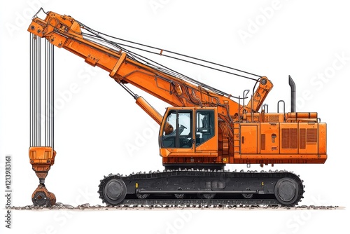 Crawler Crane isolated on white background. Crane icon. Heavy Machinery isolated on white. Construction Crane. Crawler Crane Design Element. Crane Vehicle Isolated for Designers.