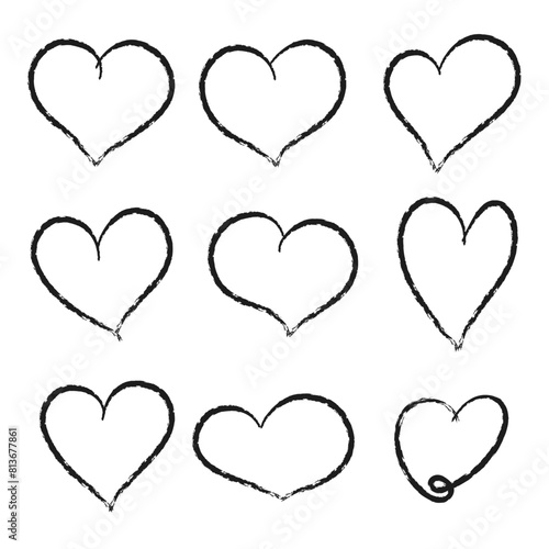 Crayon hearts painted with marker or pencil. Hand drawn chalk symbol of love. Vector Illustration on white background