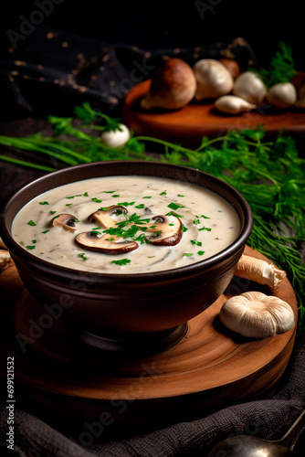 mushroom, soup, cream, plate, herb, meal, parsley, vegetarian, bowl, fresh, champignon, lunch, food, table, creamy, dinner, cooking, dish, vegetable, healthy, tasty, epicure, delicious, background, organic, bread, white, mushroom, brown, spoon, traditional, rustic, closeup, hot, cookery, homemade, copy space, banner, wooden, diet, green, warm, cooked, ingredient, thyme, vegetable, vegan