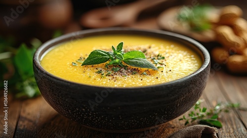 Creamy, golden soup with herbs