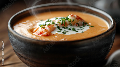 lobster, soup, cream, creamy, chives, culinary, food, delicious, epicure, receipe, eatery, dish, seafood, lunch, dinner, comfort, gastronomy, tasty, deliciously, hot, warm, rustic, bowl, smooth, texture, appetising, fresh, herb, elegant, premium, luxury, cookery, seasonal, menu, plate, steaming, deliciously