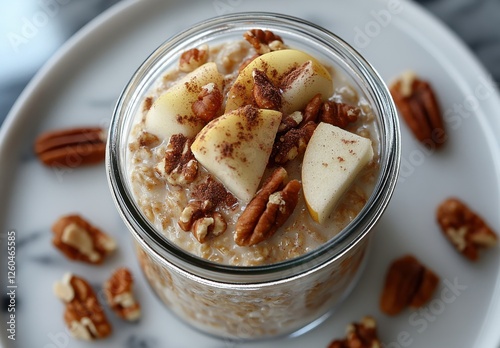 oatmeal, breakfast, healthy, jar, apple, pecan, cinnamon, nut, grain, fiber, creamy, nourishment, food photography, delicious, natural, wholesome, organic, ingredient, lifestyle, cooking, vegetarian, comfort food, energy, diet, fresh, autumn, rustic, homemade, snack, fuel, epicure, sweetness, texture, simple, aesthetic, culinary, vegan, tasty, seasonal, vibrant, artisan, preparation, favor