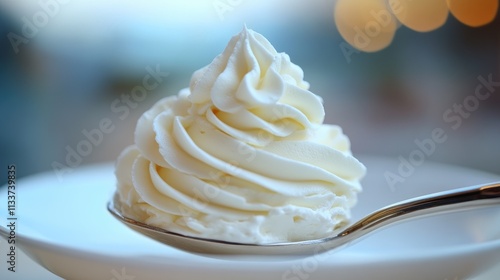 Creamy Whipped Topping Swirl on a Plate with Spoon