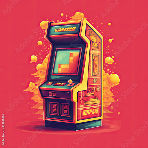 Create a banner with a retro arcade game cabinet and pixelated graphics generative ai