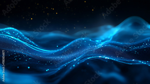 Creative blue wave line light wallpaper, 3d rendering