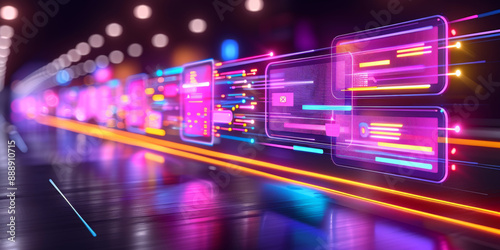 Creative digital data transfer and exchange folders on dark background. Backup data, virtual document storage or loading on cloud service. 3D Rendering.