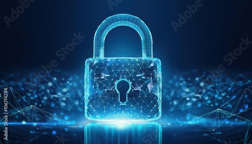 creative, digital, polygonal, hologram, blue background, safety, protection, security, concept, technology, encryption, data protection, secure, lock, virtual, firewall, privacy