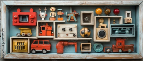 creative, distress, rectangle, frame, showcase, mix, modern, vintage, toy, summing, decor, mood, nostalgia, hand-made, highlight, aesthetic, gallery, vibrant, childhood, design, furniture, accent, element, display, festive, playful, ambience, essence, feature, invite, artwork, arrangement, sharpened, context, showroom, collection, colourful, photo, detail