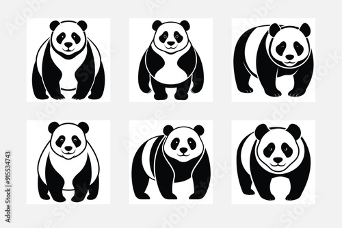 bearing, panda, set, cartoon, cute, funny, animal, zoo, drawing, art, toy, illustration, collection