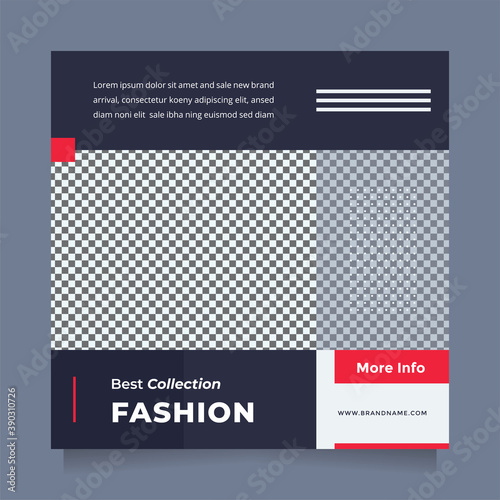 Creative, modern and minimalist fashion sale social media post and banner design template. Clean template with modern blue and red color combination for promotion brand fashion and beauty product