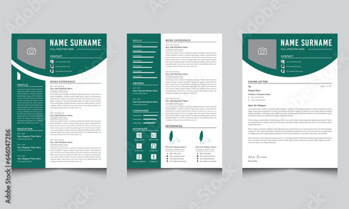 Creative Resume Layout with Green and White Color Accents Template Design
