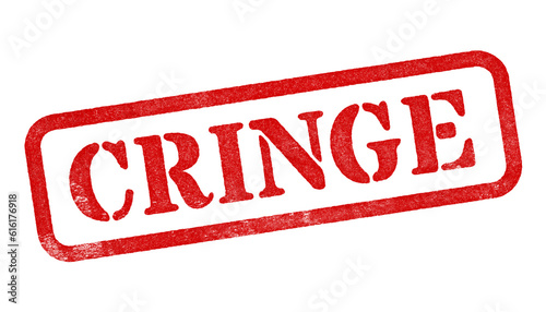 Cringe red rubber stamp isolated on transparent background with distressed texture effect