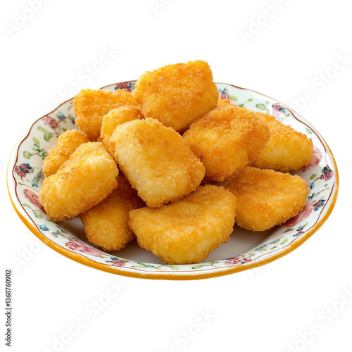 food, fried, snack, chicken, baked, delicious, meal, sweet, pastry, tasty, white, nugget, meat, potato, dish, roast, crispy, breaded, epicure, lunch, cookery, dinner, cooked, isolated, closeup, eat, nugget, plate