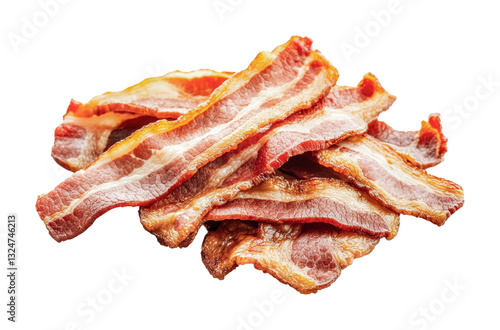 Crispy cooked bacon strips highlighting texture and color, cut out