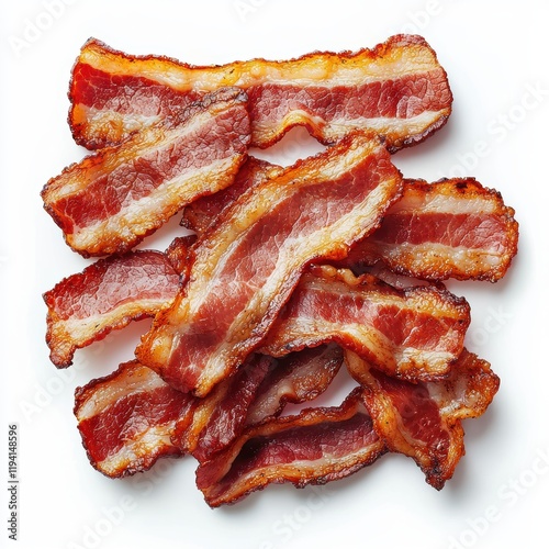 Crispy Fried Bacon Strips on White Background for Culinary Use
