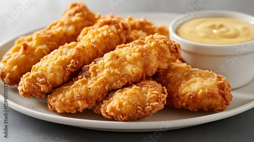 Crispy Fried Chicken Nuggets with Dipping Sauce on a Plate