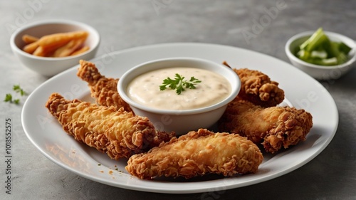 Crispy Fried Chicken Tenders with Dipping Sauce for your background business, poster, wallpaper, banner, backdrop, greeting cards, and advertising for business entities or brands.