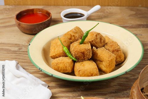 Crispy Fried Tofu Cubes with Chili and Dipping Sauces