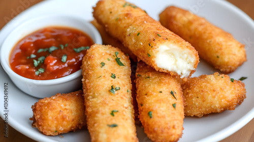 crispy, mozzarella, stick, gold, exterior, lemony, sweet, sour, sauce, dip, favor, combination, cheesy, savoury, fried, crunchy, golden brown, rich, snack, indulgent, melted
