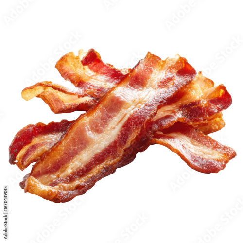 bacon, pork meat, meat, crispy, cured, fats, savoury, protein, isolated, studio shot, detail, food and drink