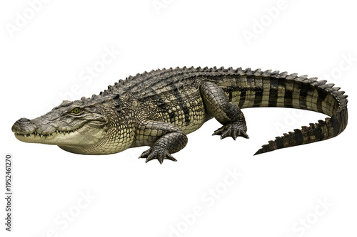 crocodile, reptile, alligator, wild animal, predator, wildlife, animal, white background, scale, zoo animal, nature, macro, hi-res, studio shot, isolated object, animal body, tail, jaw, teeth, carnivore, safari, wilderness, fauna, hunter, survival