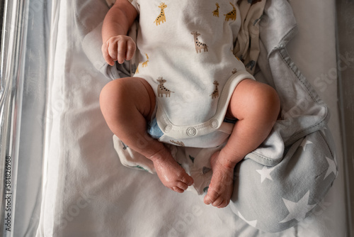 baby, babyhood, barefoot beach, blanket, born, childbirth, childhood, closeup, comfort, cot, coverlet, cradle, crib, daytime, delicate, foot, from above, gentle, hospital, hospital room, indoor, infant, innocent, leg, little, lying, medicals, medicine, newborn, nightwear, overhead, pad, pajama, patient, peaceful, plaid, sleep, soft, tender, topview, tranquil, ward, warm, wrinkle