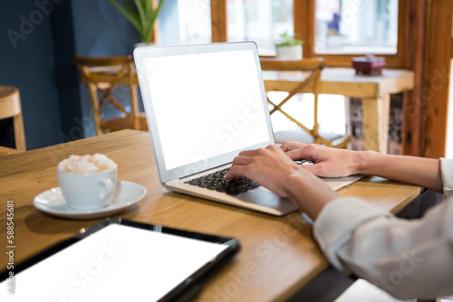 no people, woman, part of, cafes, cafes, lifestyle, cup, table, touch screen, using, hot drink, coffee cup, drink, refreshment, food and drink, screen, indoor, cropped, human hand, technology, wood, day, laptop, communication, connection, typing